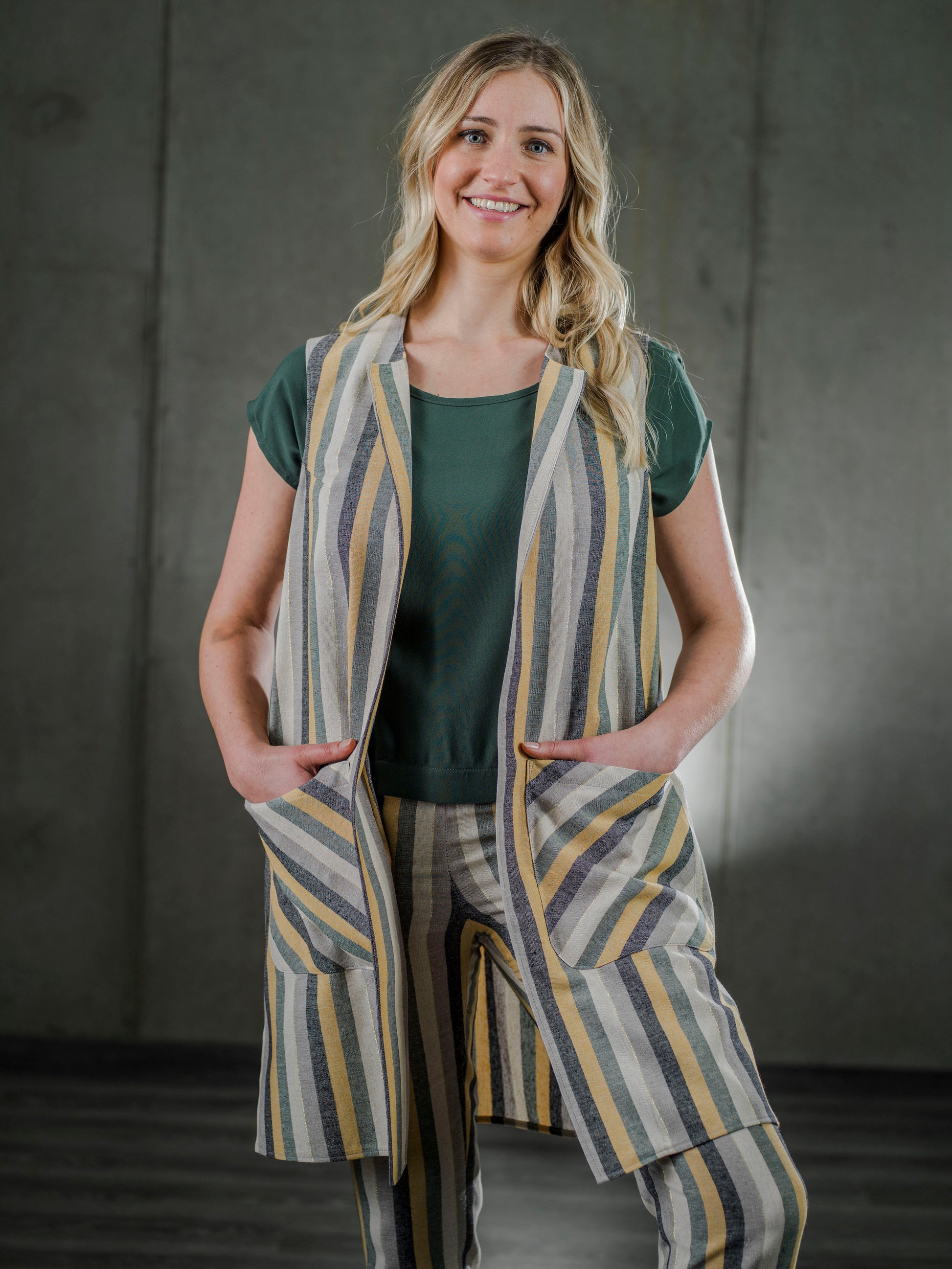 Diese Weste aus 88 % recycelter Baumwolle ist nicht nur umweltbewusst, sondern auch stilvoll. Die aufgesetzten Taschen mit schrägem Fadenverlauf am Vorderteil bieten Platz für alle wichtigen Dinge und der Gummizug auf Taillenhöhe im Rückteil sorgt für eine perfekte Passform. Ein Muss für jeden modebewussten und nachhaltigen Kleiderschrank!